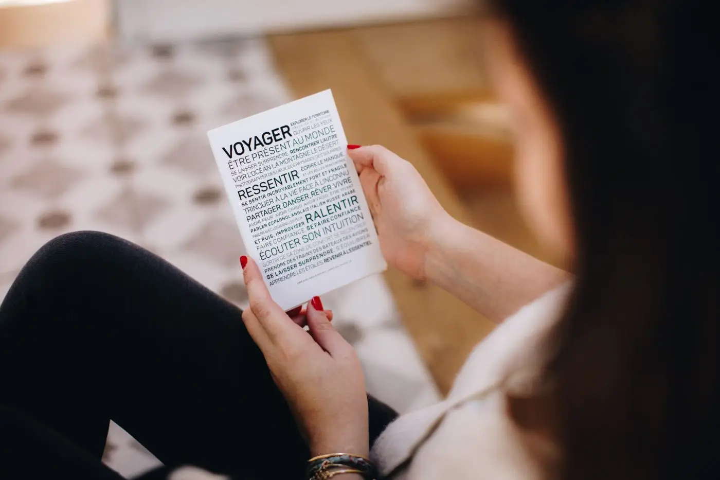 Depuis que j’ai créé cette affiche et carte postale sur le voyage, je l’utilise souvent quand je pars en vacances pour l’envoi de mes cartes postales. J’ai toujours un lot dans mon carnet « au cas où ».