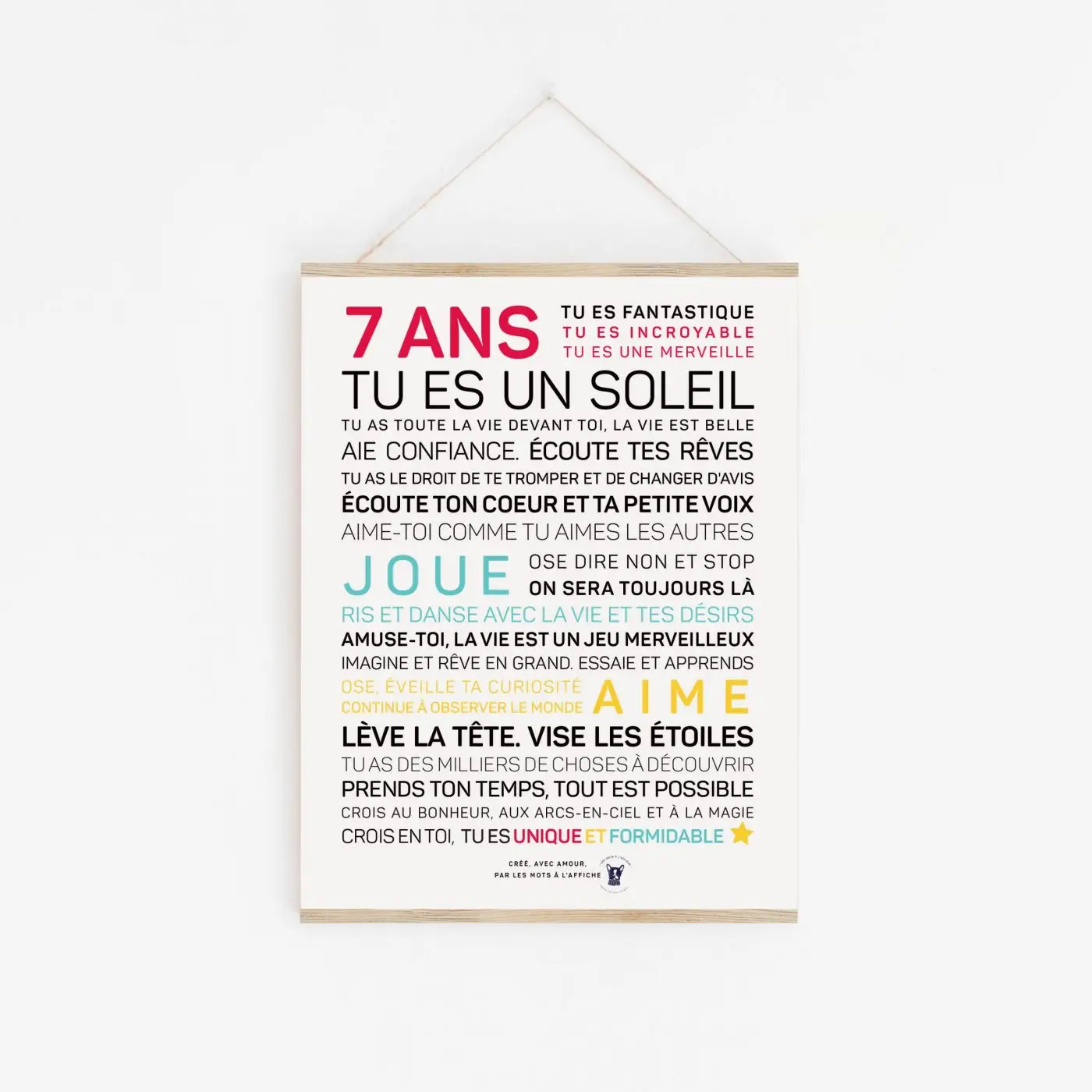 Une affiche magique, un cadeau pour soi ou à offrir, pour ses 7 ans, ou à offrir, pour se rappeler, chaque jour, combien la vie est belle, fragile et précieuse quand on a quarante ans.