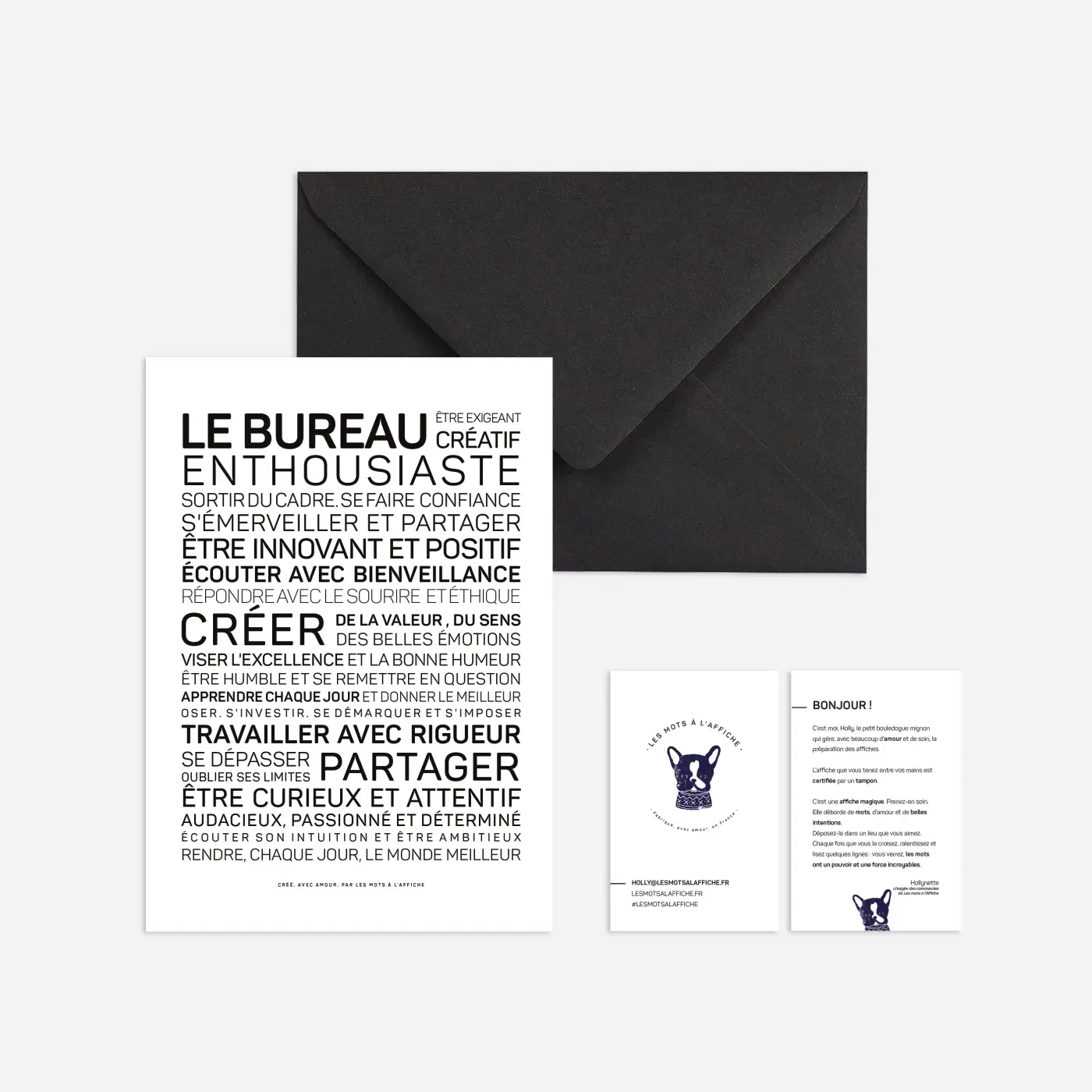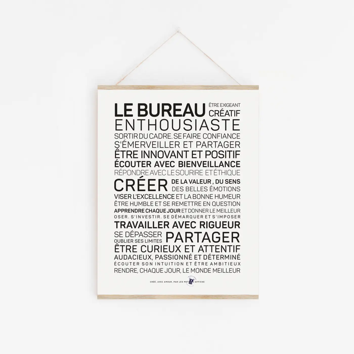Nous avons imaginé cette affiche comme un manifeste de l’entreprise et de l’entrepreneur (et qui s’adapte aussi bien en étant freelance ou entrepreneur !) à encadrer au dessus de son bureau, dans un un open-space ou encore dans une salle de réunion.  Cette affiche rappelle les valeurs essentielles du travail, de l’entreprenariat et du vivre ensemble (parce que oui, il est important de répondre toujours avec le sourire et d’écouter avec bienveillance !).