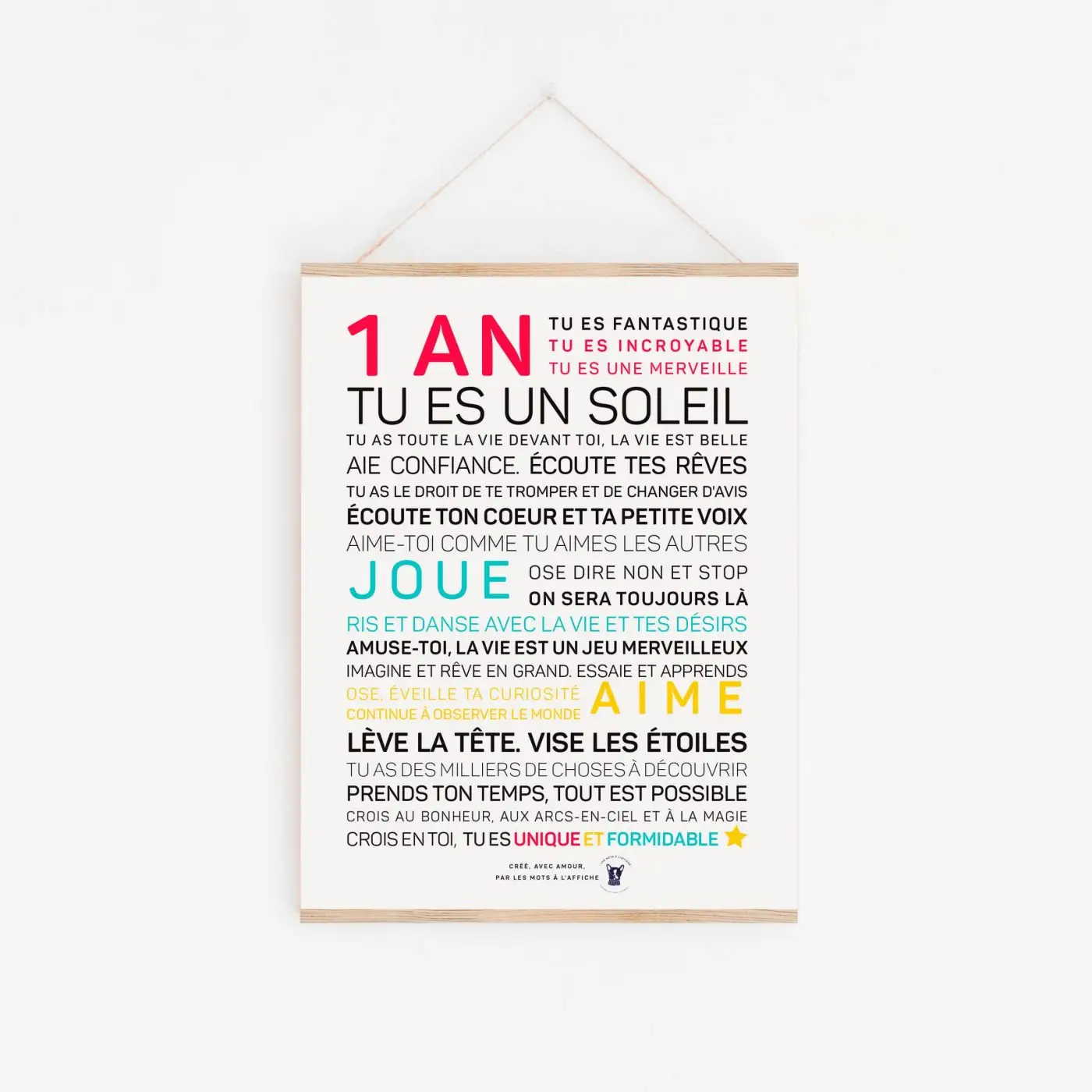Une affiche magique, un cadeau pour soi ou à offrir, pour ses 1 an, ou à offrir, pour se rappeler, chaque jour, combien la vie est belle, fragile et précieuse quand on a un an.