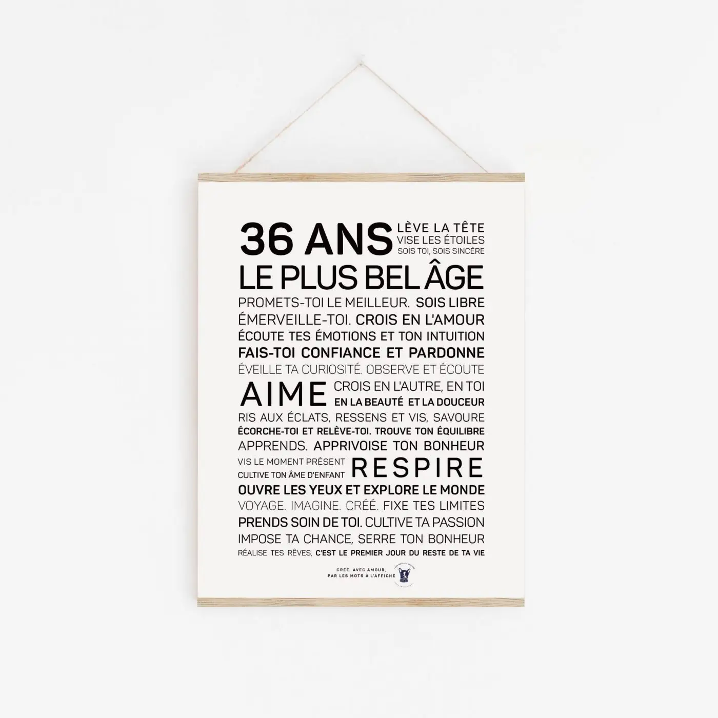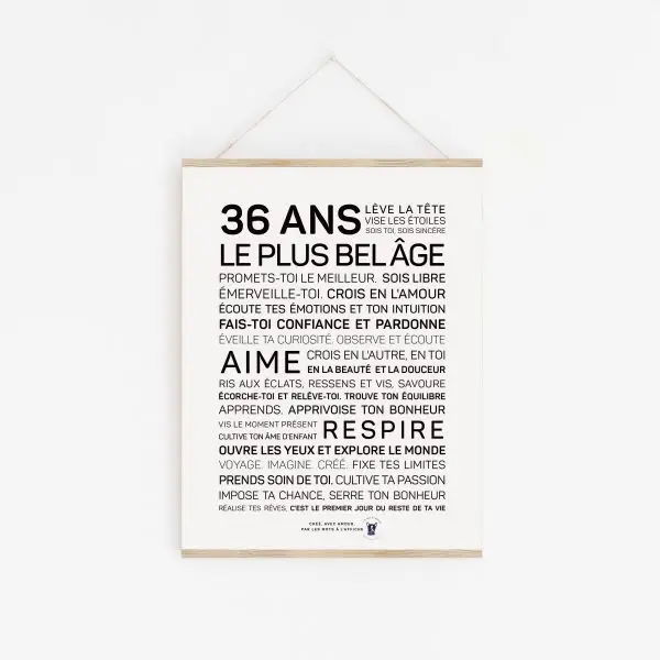 Une affiche magique, un cadeau pour soi ou à offrir, pour ses 36 ans, ou à offrir, pour se rappeler, chaque jour, combien la vie est belle, fragile et précieuse quand on a trente ans.