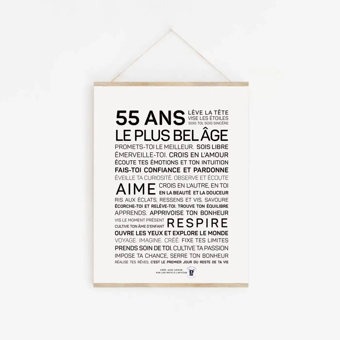 Une affiche magique, un cadeau pour soi ou à offrir, pour ses 55 ans, ou à offrir, pour se rappeler, chaque jour, combien la vie est belle, fragile et précieuse quand on a cinquante ans.