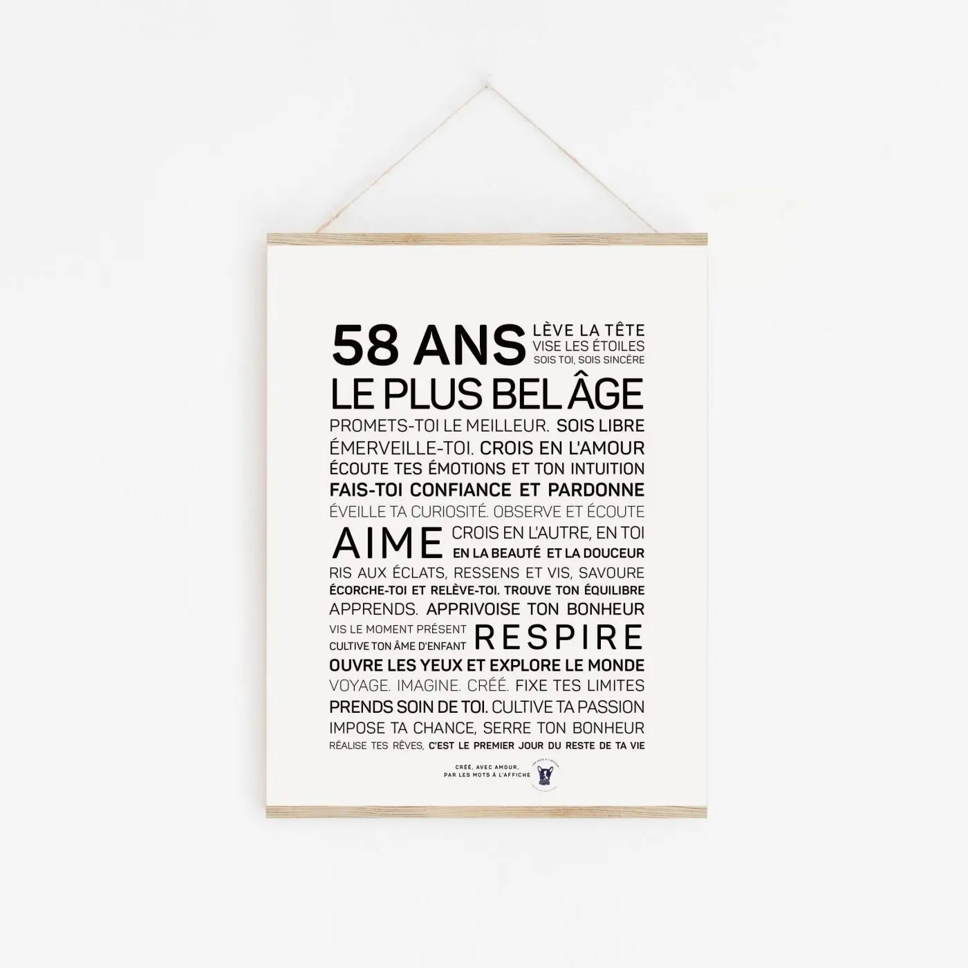 Une affiche magique, un cadeau pour soi ou à offrir, pour ses 58 ans, ou à offrir, pour se rappeler, chaque jour, combien la vie est belle, fragile et précieuse quand on a cinquante ans.