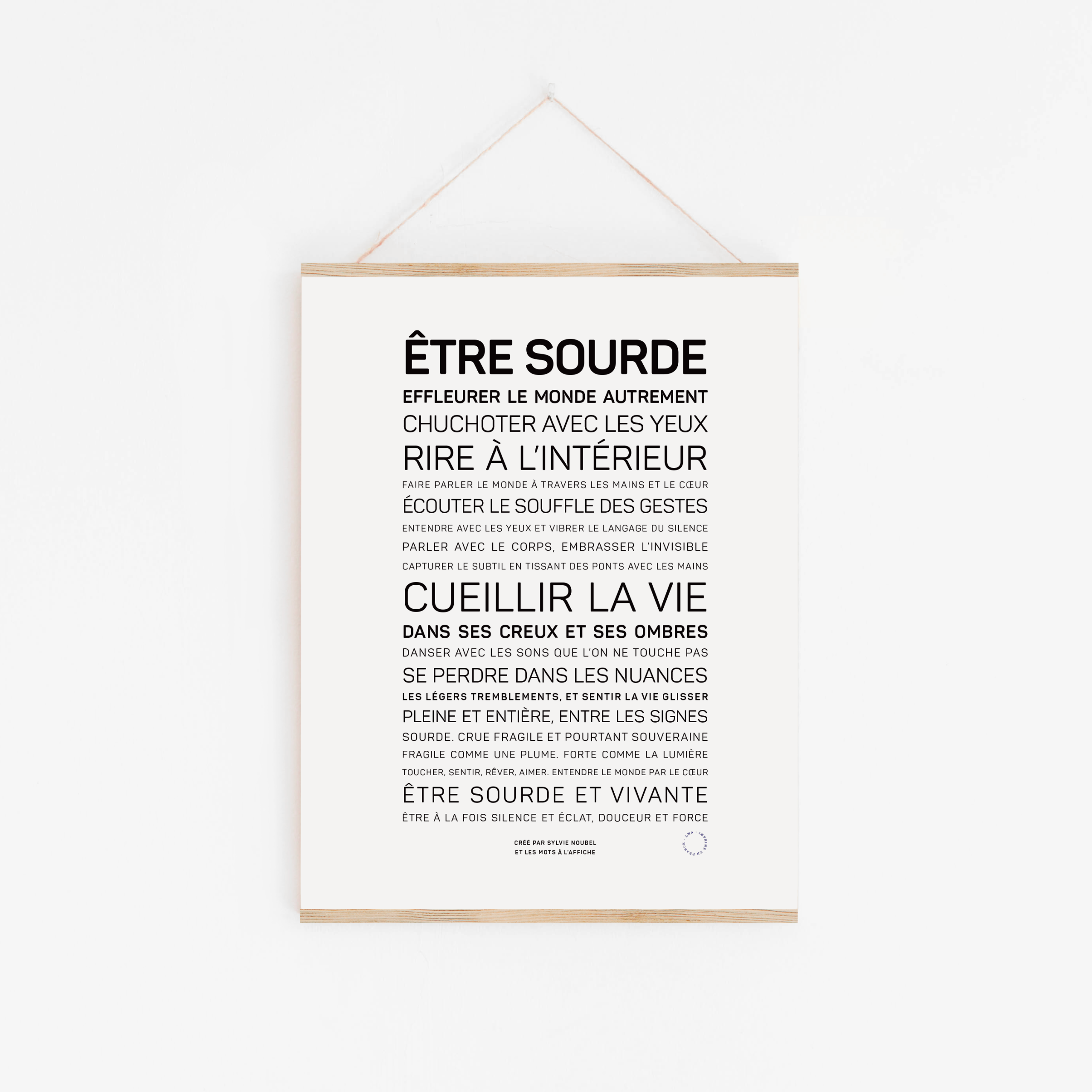 Cette affiche est pour elle. Pour tous ceux et celles, sourds, sourdes, qui m’ont emmenée dans leur monde et m’ont appris que la surdité n’est pas une absence, c’est une présence, autrement. Pleine. Vibrante. Souveraine.