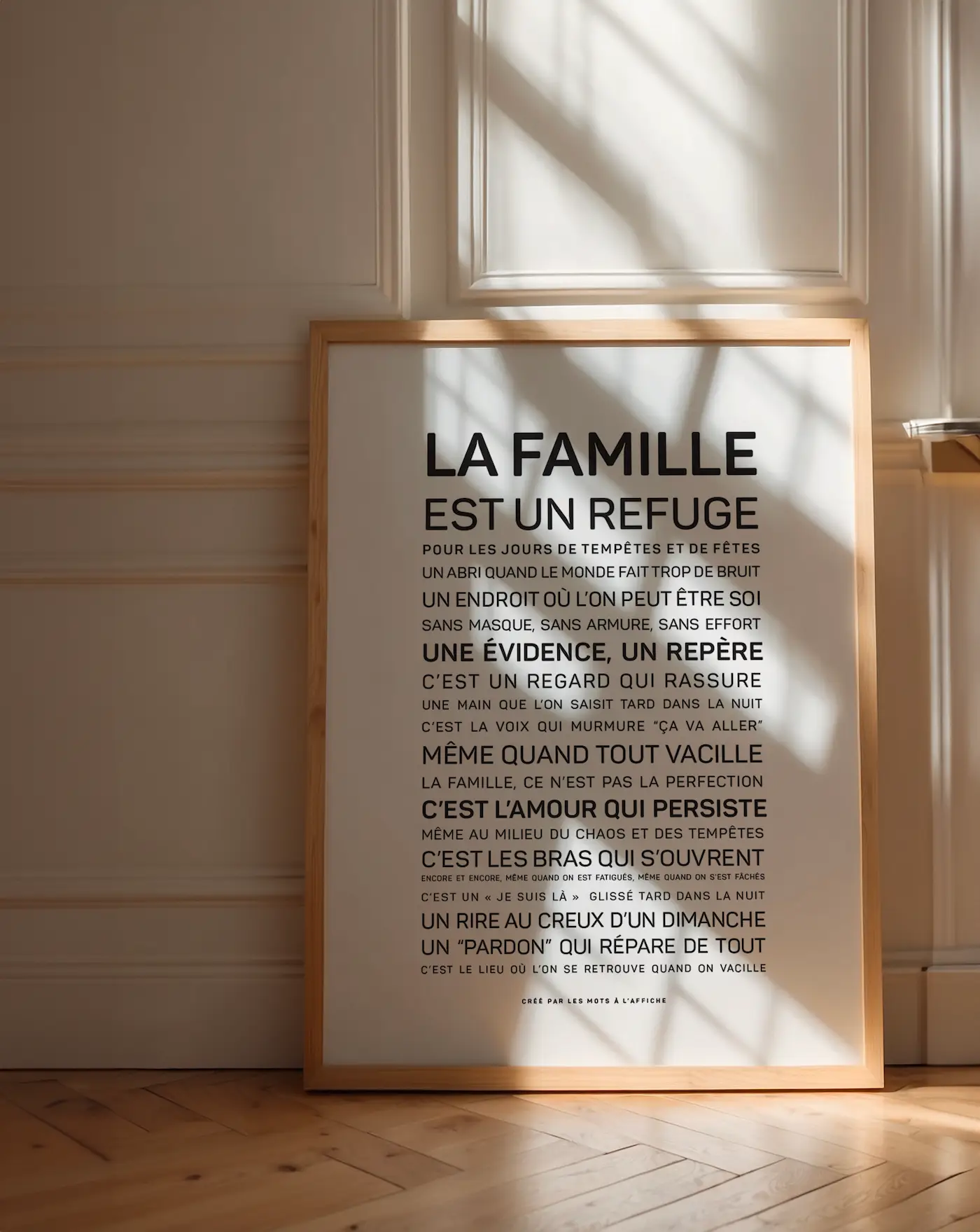 Cette affiche célèbre la tendresse des foyers imparfaits. Elle raconte ces bras qui s’ouvrent, même fatigués.Ces silences qui rassurent plus que mille discours. Ces pardons qui réparent, ces voix qui murmurent « je suis là ».