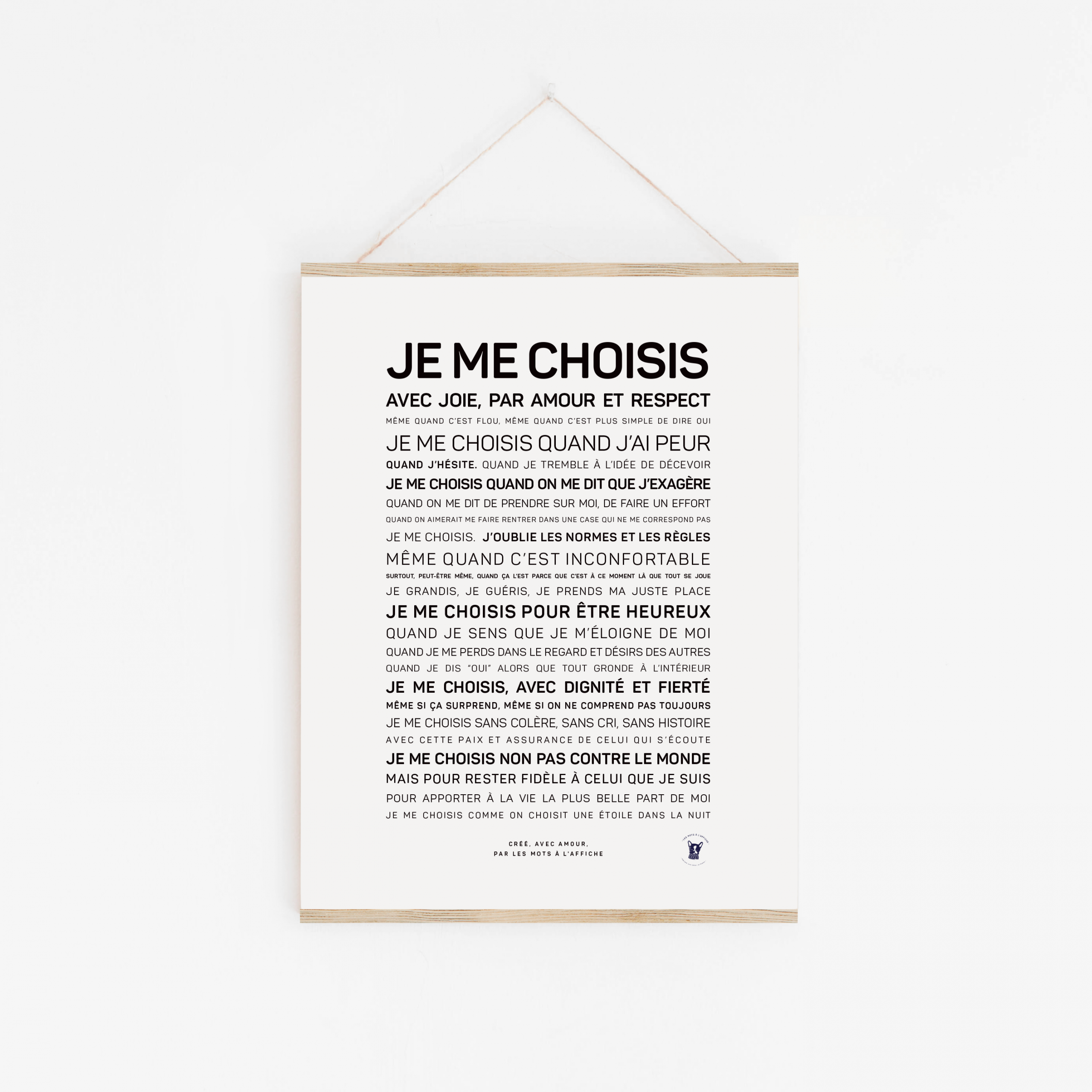 « Je me choisis » est une affiche manifeste, une déclaration intime pour toutes celles qui apprennent à s’écouter, à s’aimer, à se respecter.