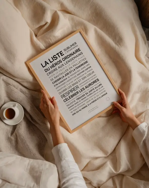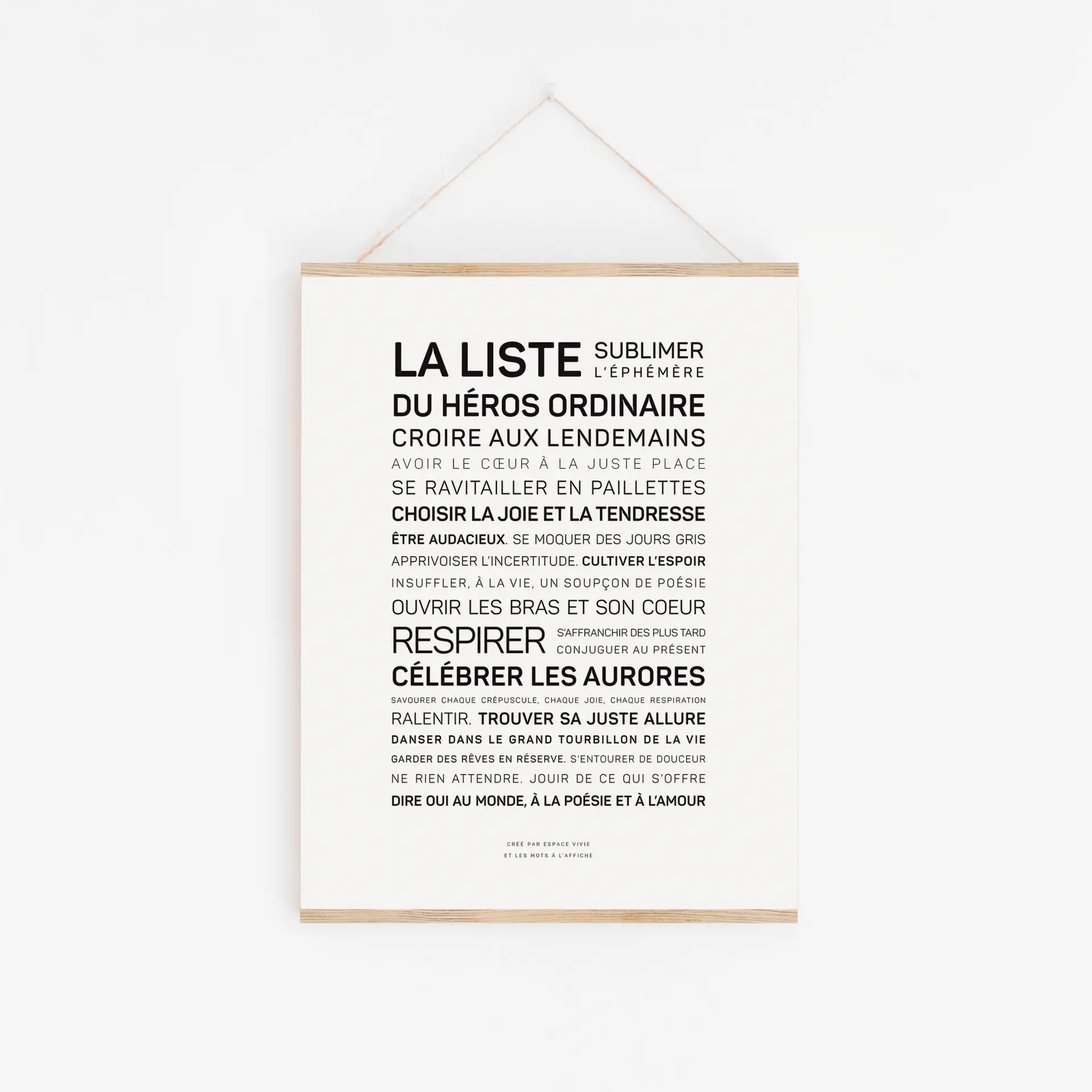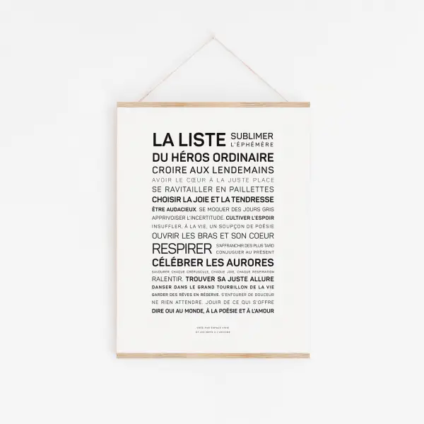 Affiche inspirante typographique, avec des textes positifs et poétiques, imprimée en France, avec soin, en petite quantité