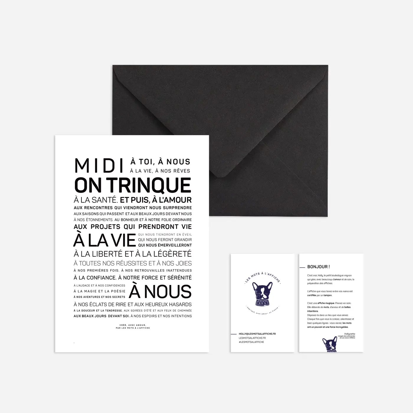 Midi, on trinque ; c’est une affiche optimiste et joyeuse pour trinquer et se souhaiter le meilleur.