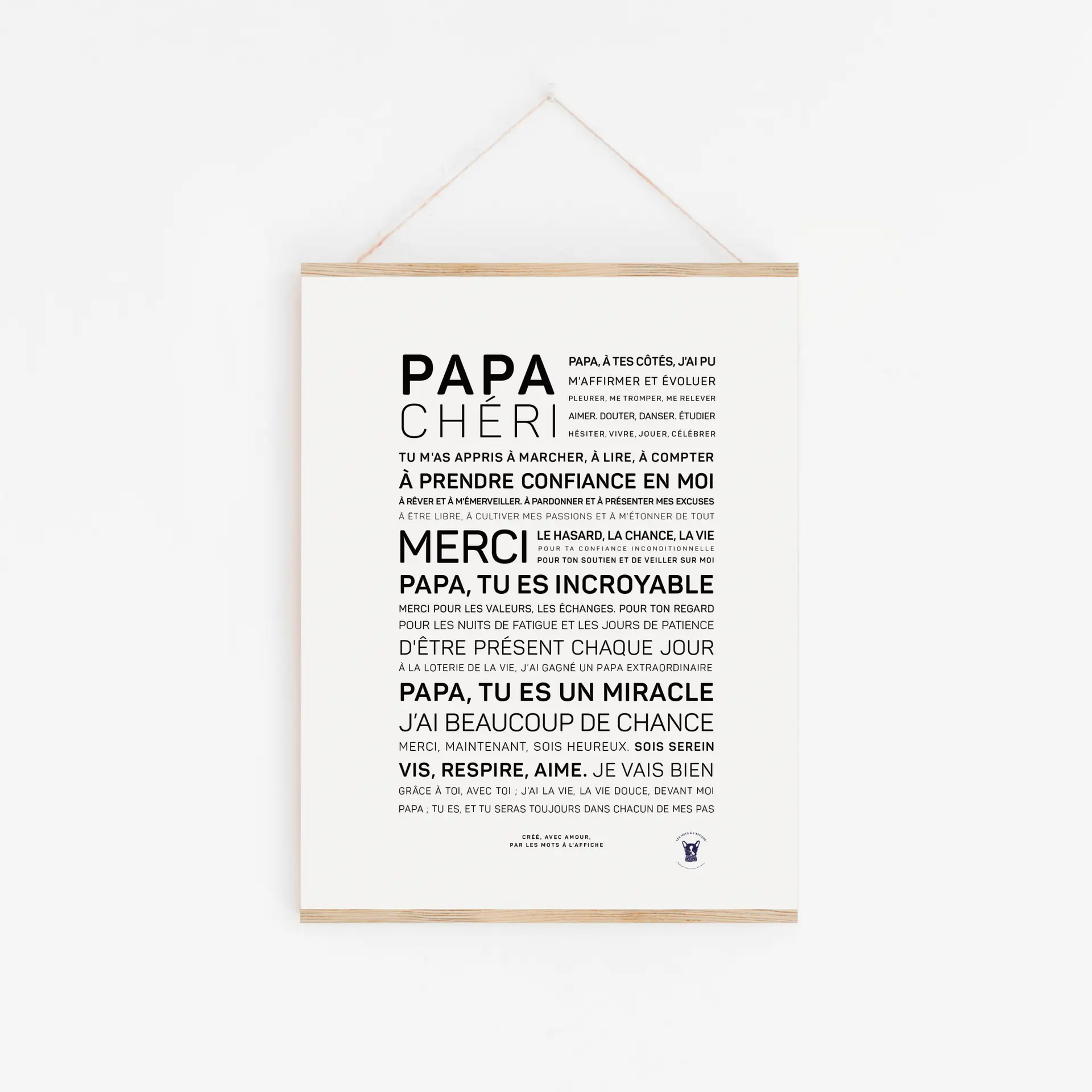 Une affiche pour remercier son papa d’être la personne merveilleuse qu’il est, une affiche pour les petites nuits et les belles journées ensemble.