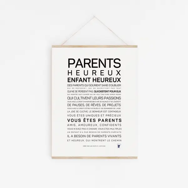 Cette affiche existe aussi au féminin pour les mamans : Affiche « Maman heureuse, enfant heureux »