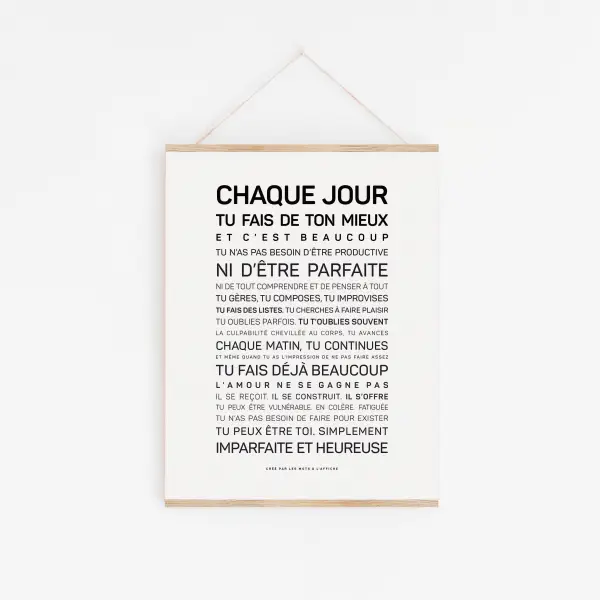 À afficher dans une chambre, une entrée ou un bureau, comme un rappel doux et quotidien : vous faites de votre mieux. Et c’est suffisant.