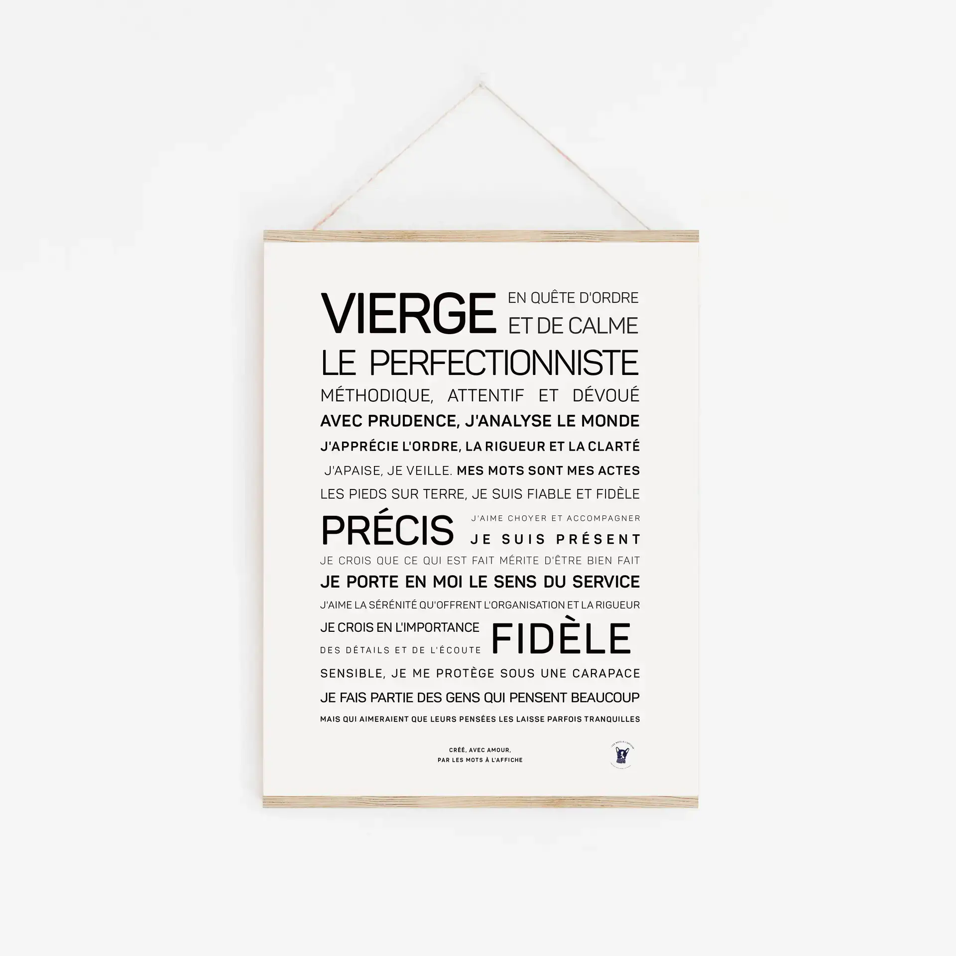 Une affiche, et des mots, sur le signe de la Vierge qui met en avant sa dévotion, sa précision et son sens du service. Sans oublier son besoin de calme et de fidélité.
