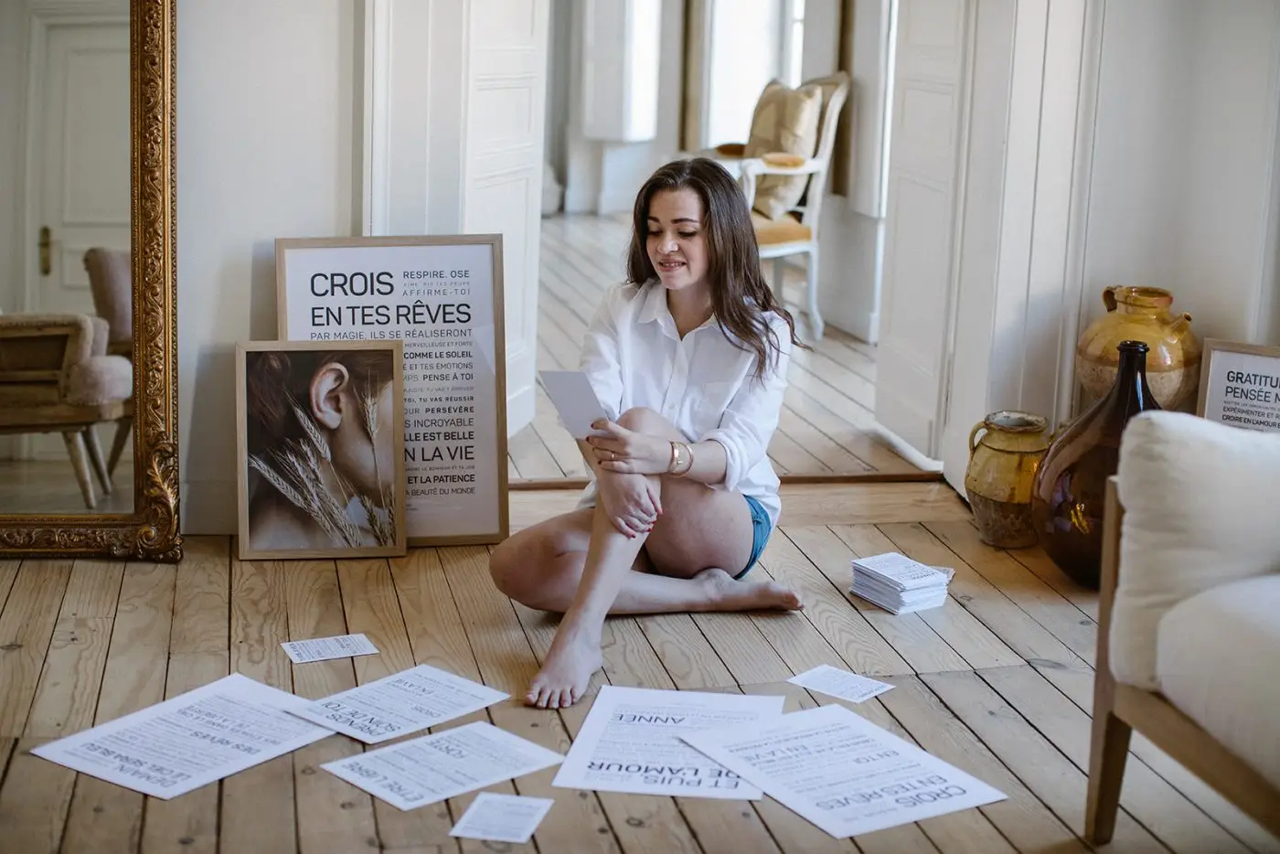 Deux ans plus tard, j’ai su que je voulais vendre mes affiches : qu’écrire, les mettre en forme et me dire que mes mots prendront vie et accompagneront d’autres personnes et les rendront peut-être aussi un peu heureuses : c’est ça, qui par ricochet, me rend vraiment heureuse.